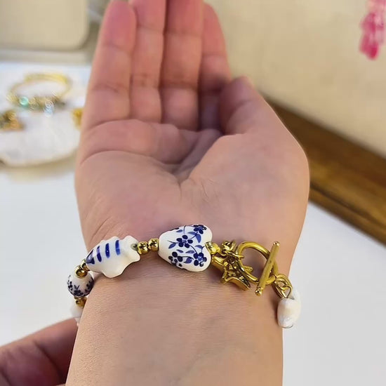 Add a touch of Mediterranean flair to your summer stack with the Azure Mosaic Bead Bracelet by Krysolis. Featuring oceanic charms, golden details, and blue ceramic beads inspired by vintage porcelain, this bracelet is perfect for coastal escapes and breezy style.