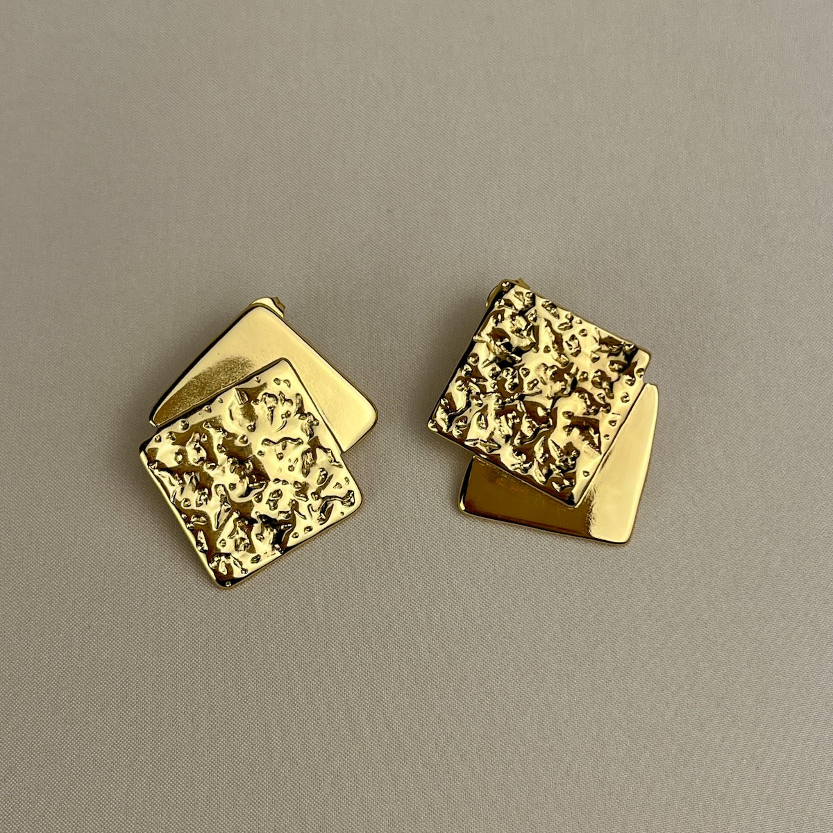 Elevate your look with the Geometric Textured Gold Earrings, where sculptural form meets molten texture. These statement earrings feature layered square silhouettes with a luminous gold-tone finish, creating an artful play of structure and light. Bold yet refined, they’re the perfect accessory for adding dimension and modern elegance to any ensemble.
